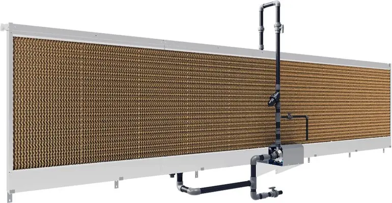 MDFX contains only one centrifugal pump for each wall. It can be installed either inside or outside the building. The water is distributed from the centre to each corner of the cooling panels, in order to ensure a constant and uniform water flow.